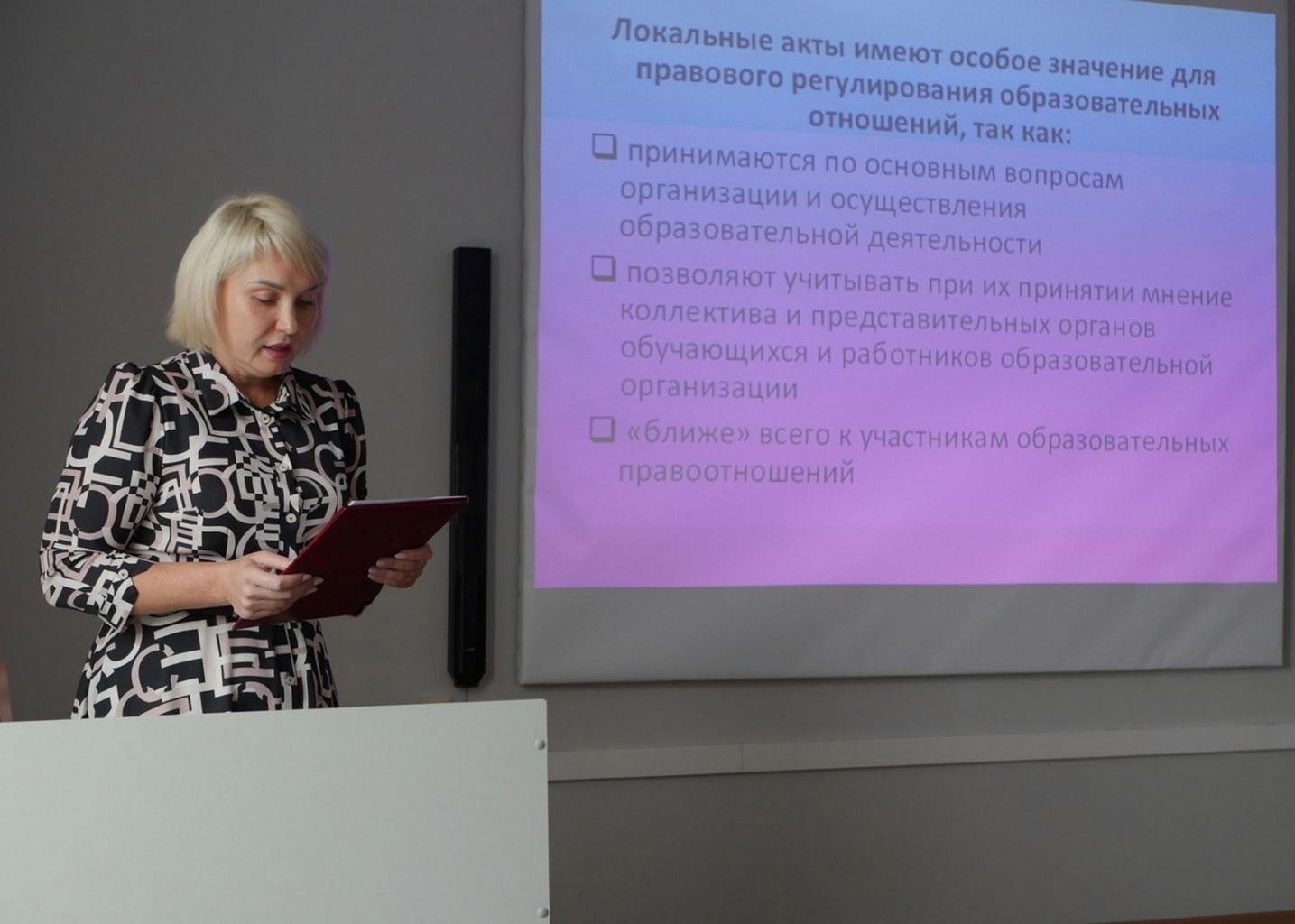 - Ирина Осипова, начальник юридического отдела, с докладом «Ознакомление с нормативными правовыми актами Горно-Алтайского государственного университета, устанавливающими права и обязанности студента»;
