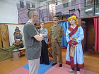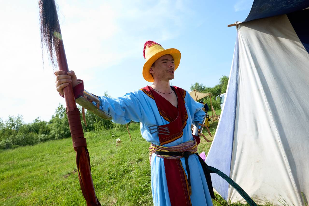Молодые реконструкторы продемонстрировали гостям фестиваля два исторических комплекта: 1) воина-интернационалиста ВДВ СССР в Афганистане 1988–1989 гг.; 2) джунгарского тайджи (название сословия) XVII–XVIII вв. Комплект Антона – большая редкость в исторической реконструкции. Он состоит из ойратского халата, колпака «пимао», пики, монгольского лука и шёлкового кушака, основан на исторических источниках Цинского происхождения и западно-монгольской и калмыцкой этнографиях.