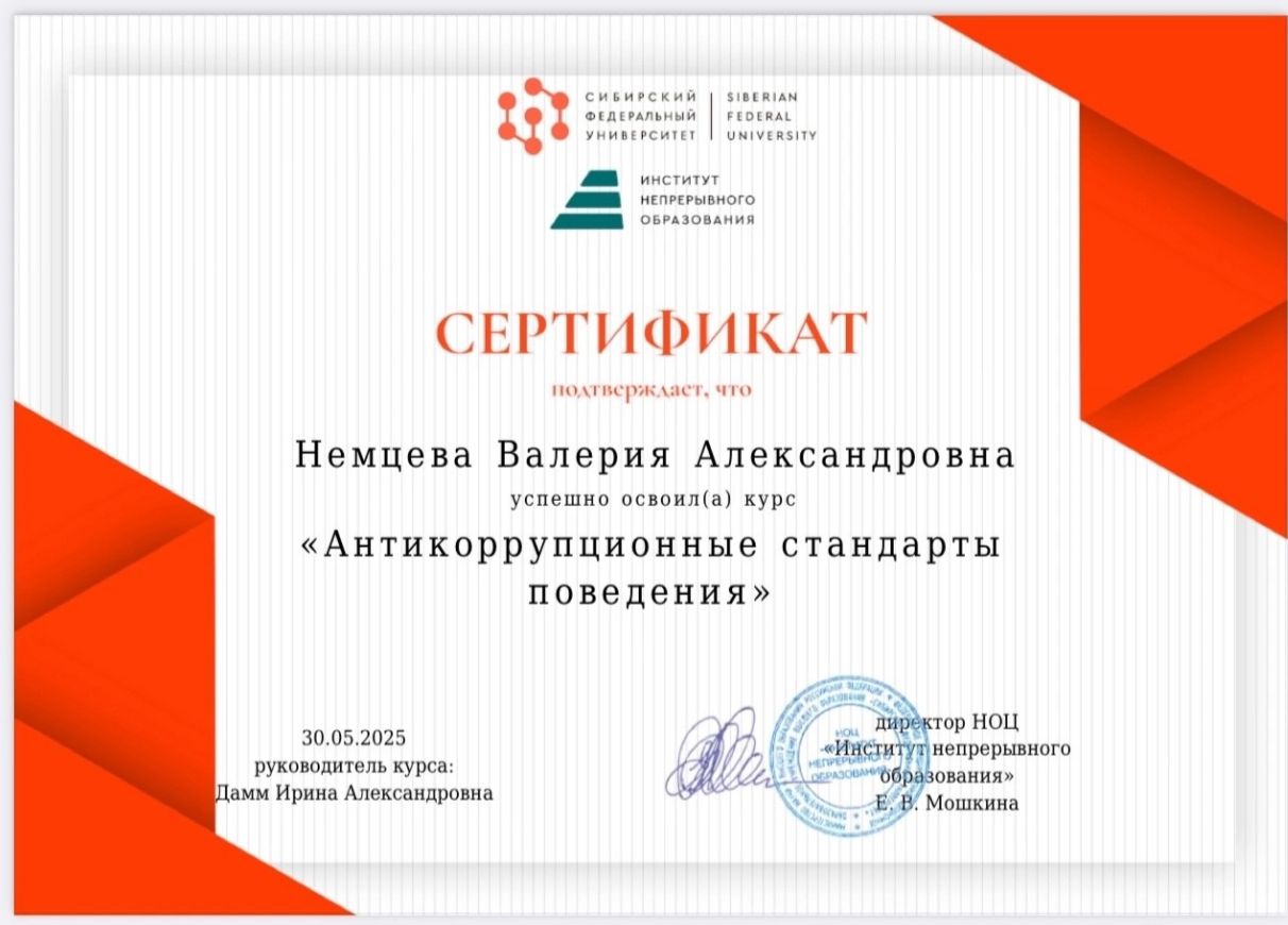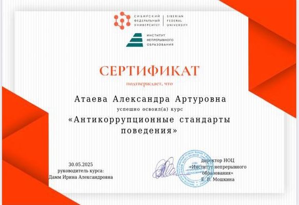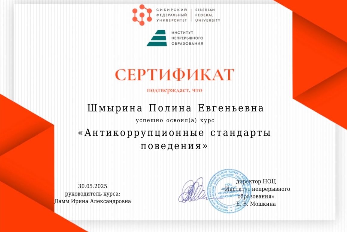 Эти курсы были организованы Центром противодействия коррупции и правовых экспертиз департамента по профилактике коррупционных правонарушений ФГАОУ ВО «Сибирский федеральный университет» в рамках федеральной программы стратегического академического лидерства «Приоритет-2030».