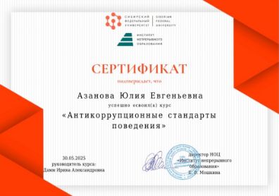 С 28 апреля по 30 мая 2025 года 17 студентов Горно-Алтайского государственного университета прошли курсы повышения квалификации по программе «Антикоррупционные стандарты поведения».